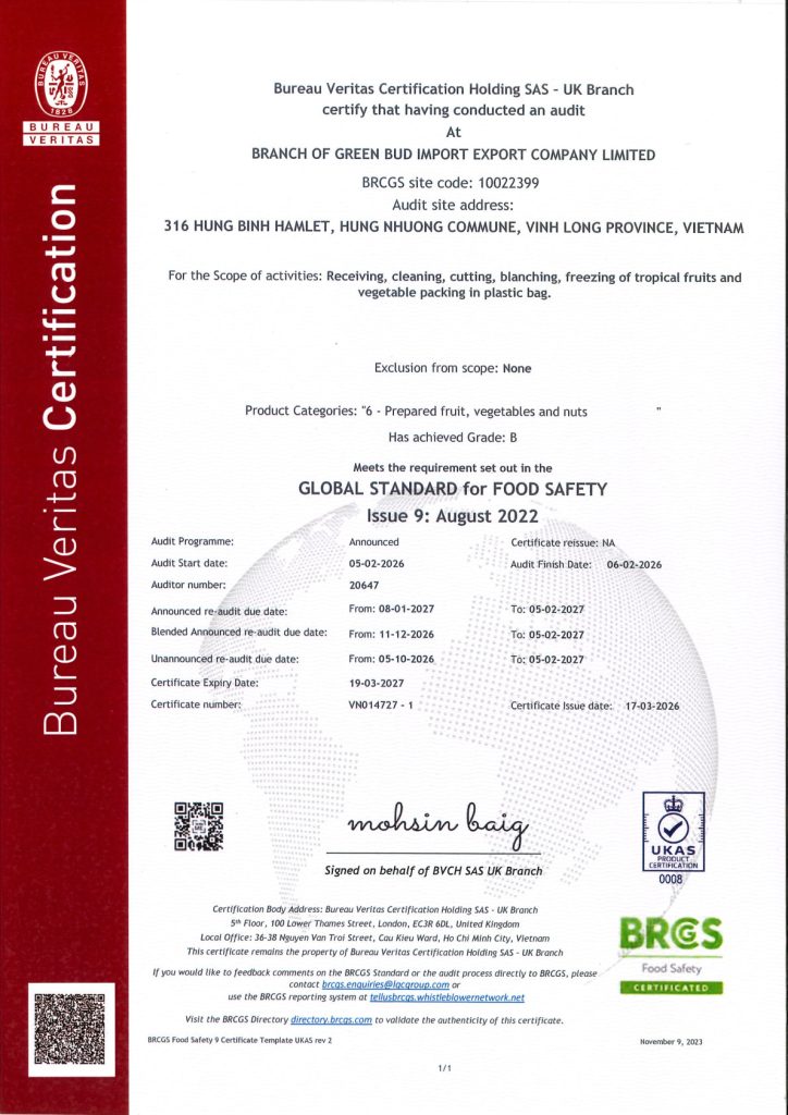 - In addition to standardizing its system to achieve BRC certification, Green Bud Company’s 2026 goal is to obtain Halal certification, a quality standard recognized by the Muslim community. With these international certifications, Green Bud’s products will have the opportunity to reach many other promising markets worldwide. This reflects the company’s long-term vision: cultivating Vietnamese values. We try our best to bring the finest Vietnamese agricultural products to customers across the globe.